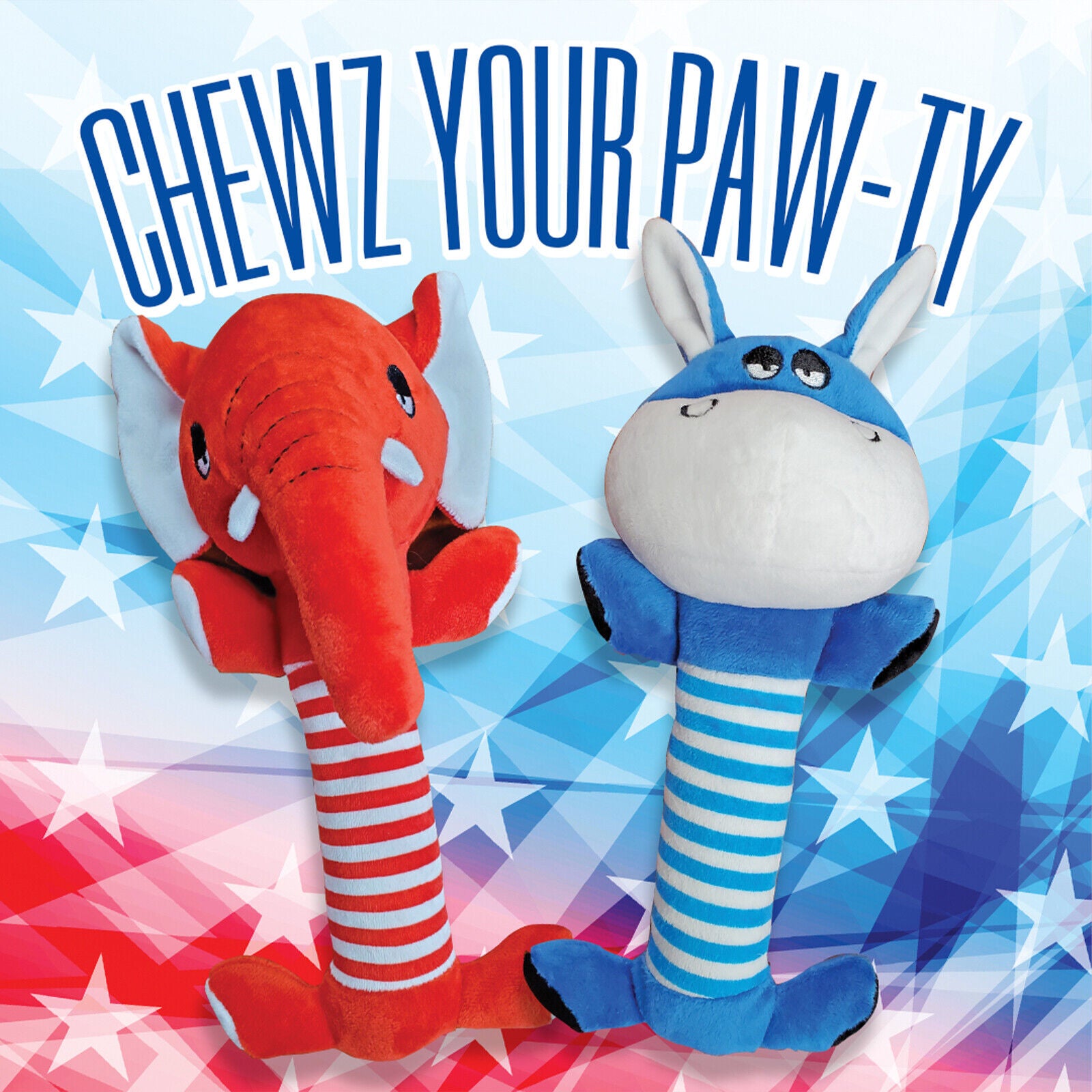 Introducing Pawty Pals, the perfect squeaky dog chew toy for your patriotic pup! These playful toys bring a touch of political fun into your home without the politics. Our Pawty Pals will provide hours of squeaky fun for your dog and prevent them from feeling lonely during the day. It's a paw-sitively patriotic experience that transcends party lines and embraces the shared love we have for our great country!